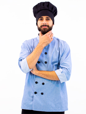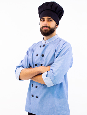 Dólmã Chef cozinha com detalhes em tricoline listrado